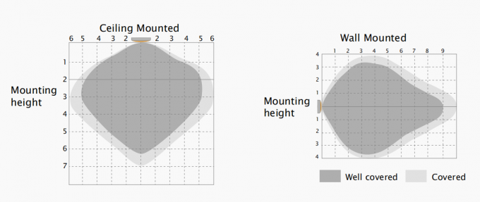 Uređaj pokazuje maksimalnu udaljenost na najvišoj visini montaže sa 100%-tnom osjetljivošću.