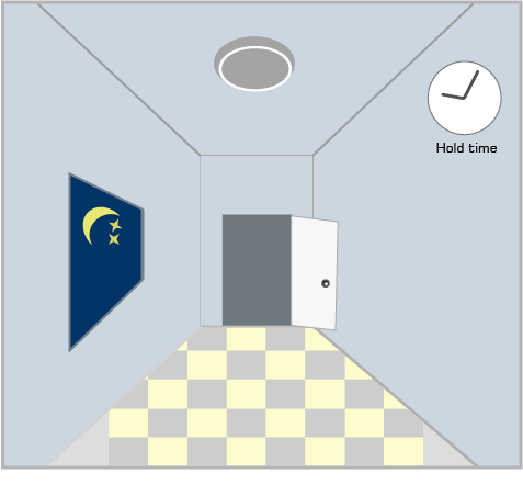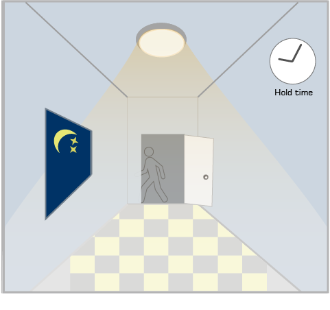 Prag dnevnog svjetla postavljen je na "Onemogući". Svjetlo se pali kada se detektira kretanje, nakon što ljudi odu, svjetlo se gasi nakon razdoblja mirovanja. Primjene: Tamna mjesta poput podrumskog parkirališta, podvožnjaka.